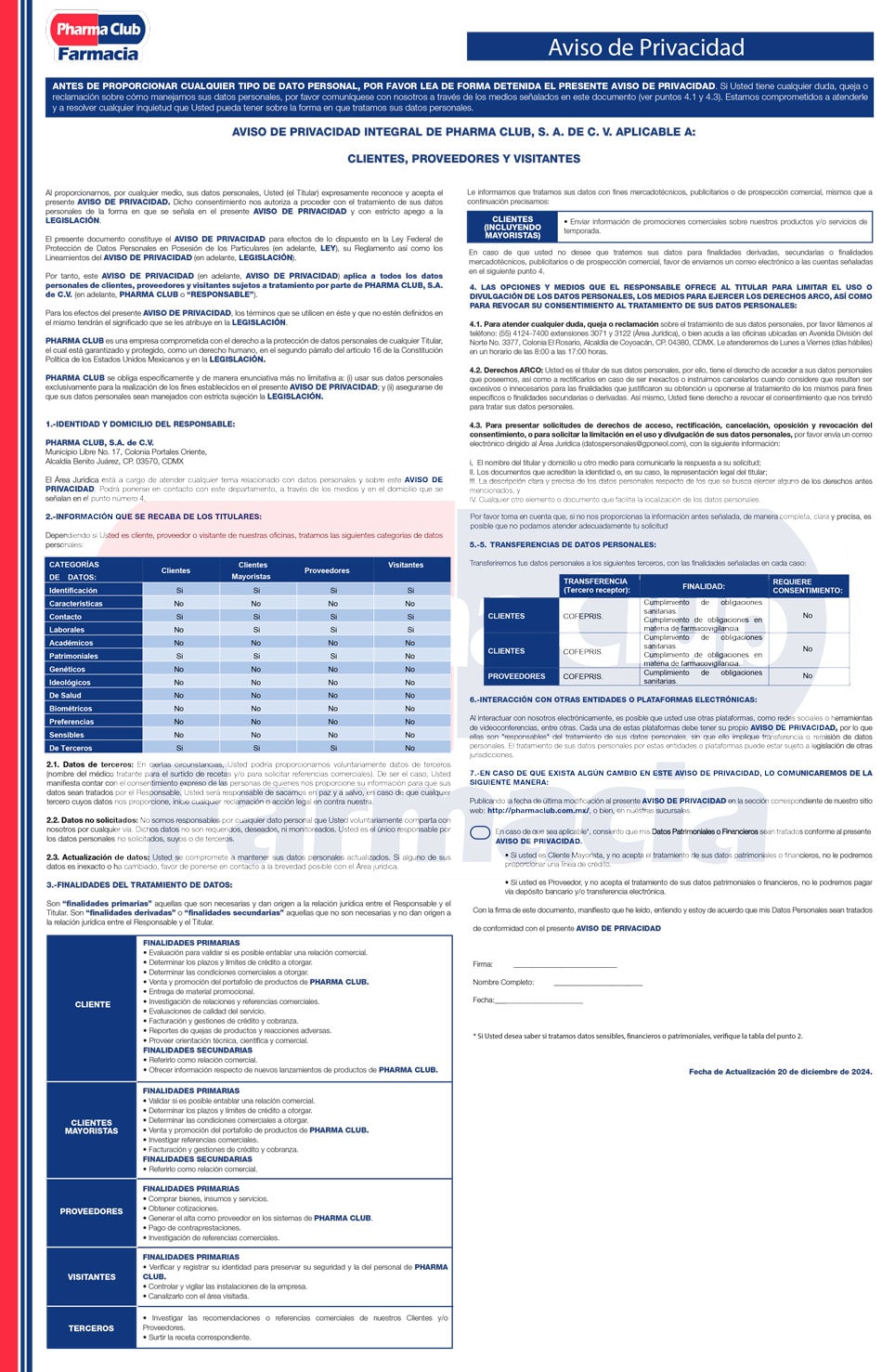 A continuación puede revisar y descargar nuestros avisos de privacidad de diferente roles de usuario.