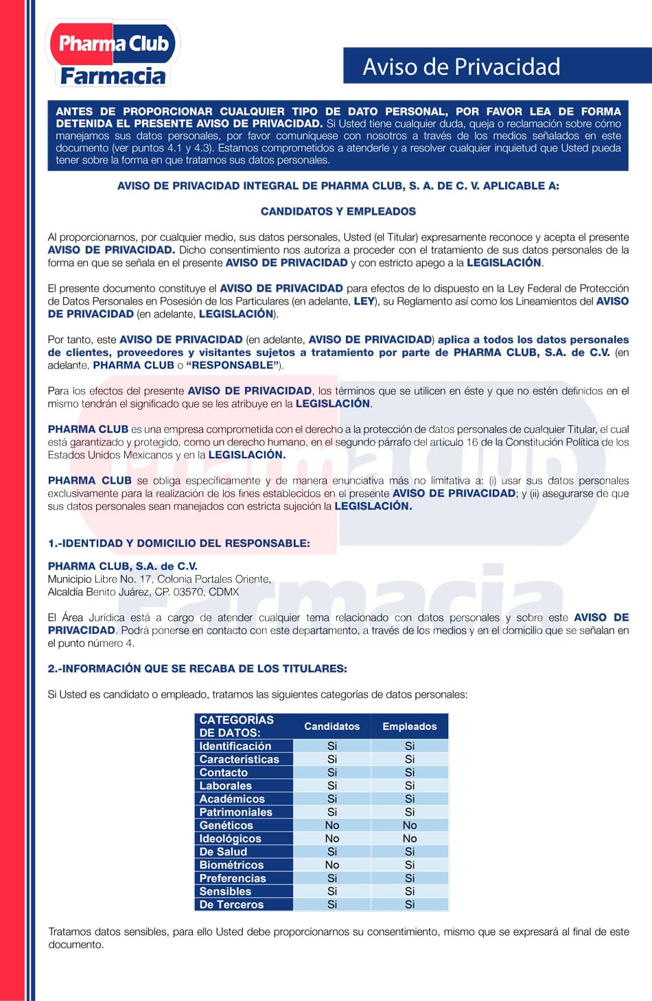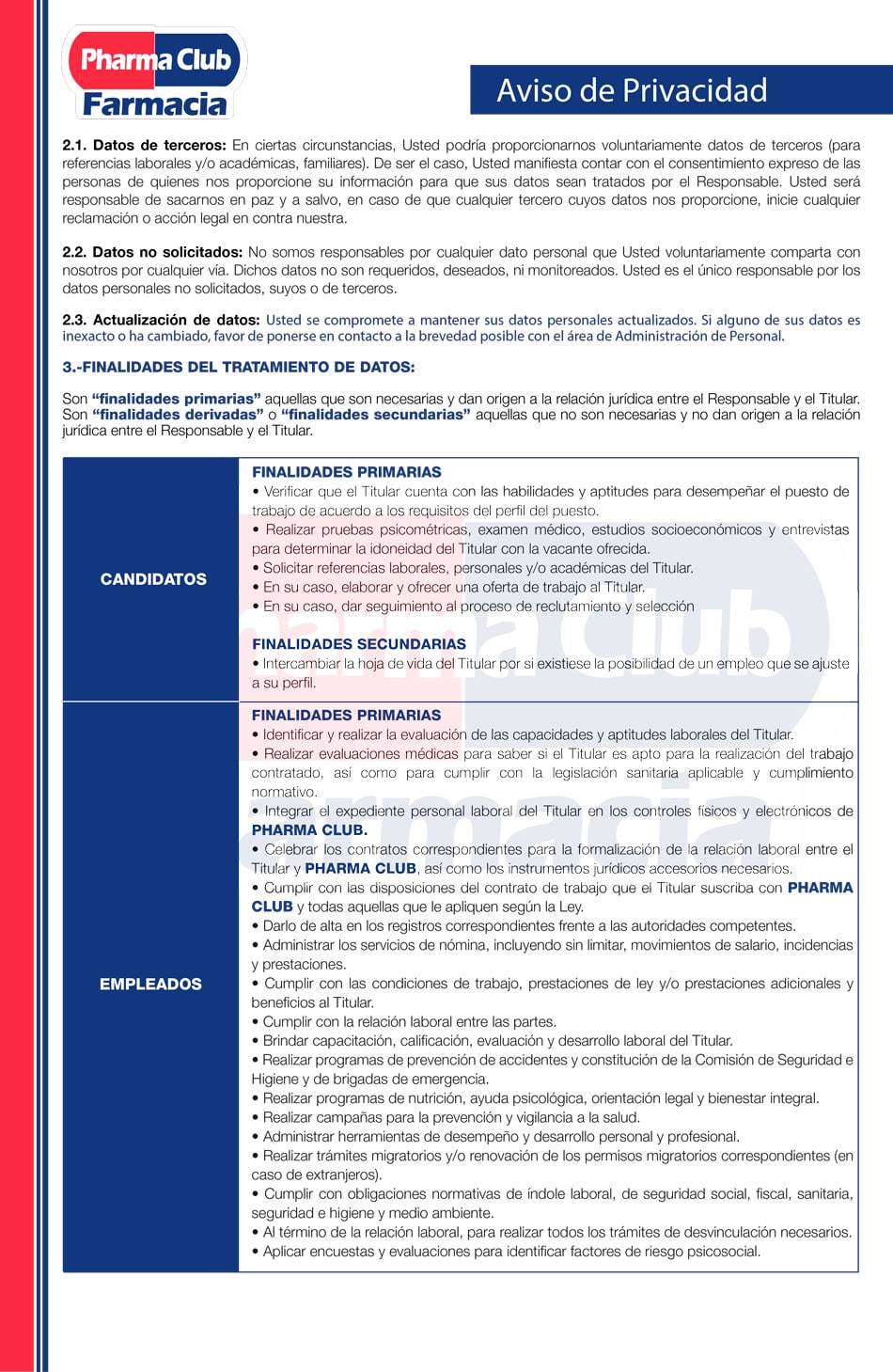 - Si usted es nuestro empleado o candidato para conocer el Aviso de Privacidad dé click aquí.